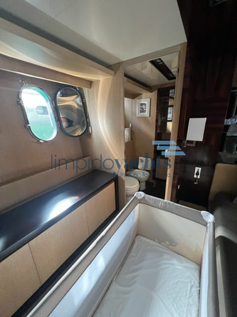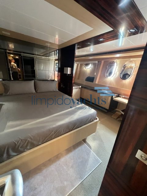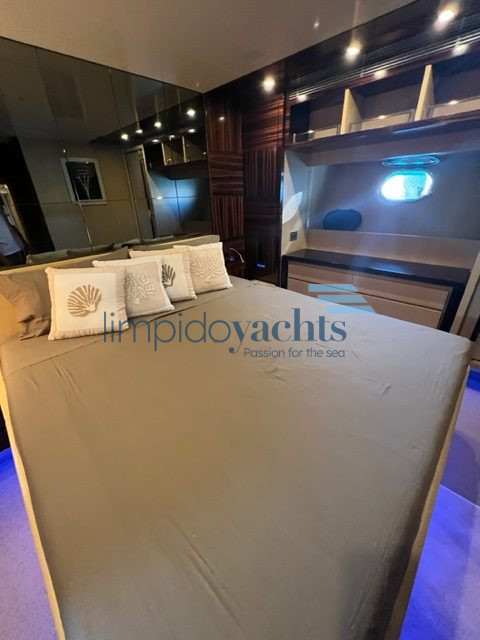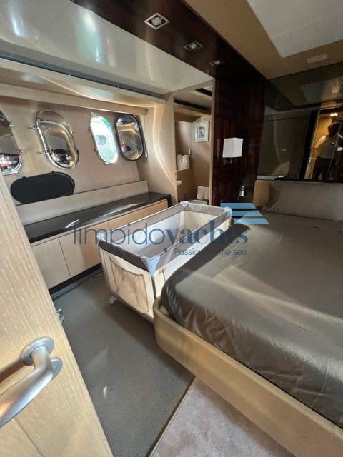 Cabina armatoriale a centro barca con letto matrimoniale e bagno privato.